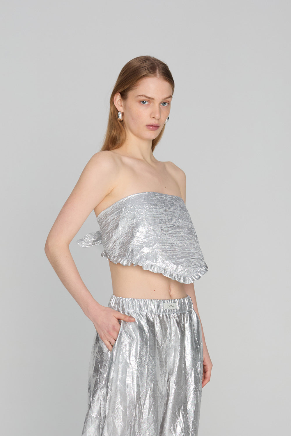 Fitted cut. Decorative frill at front. Flared sleeves inspired by a flower calyx. The whole is finished with decorative hemstitch.