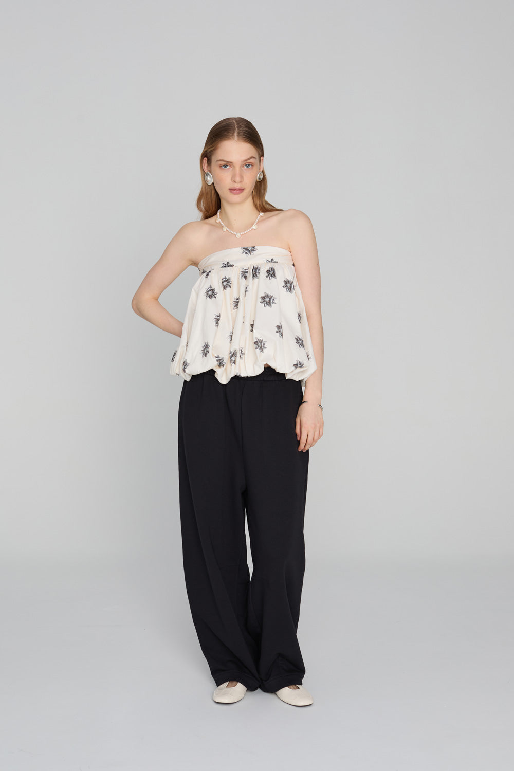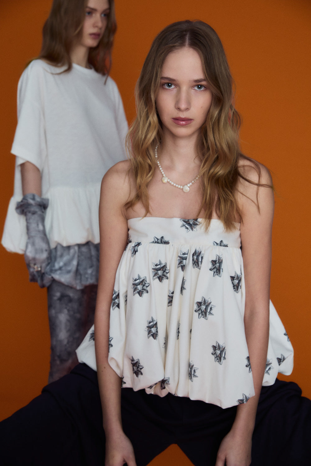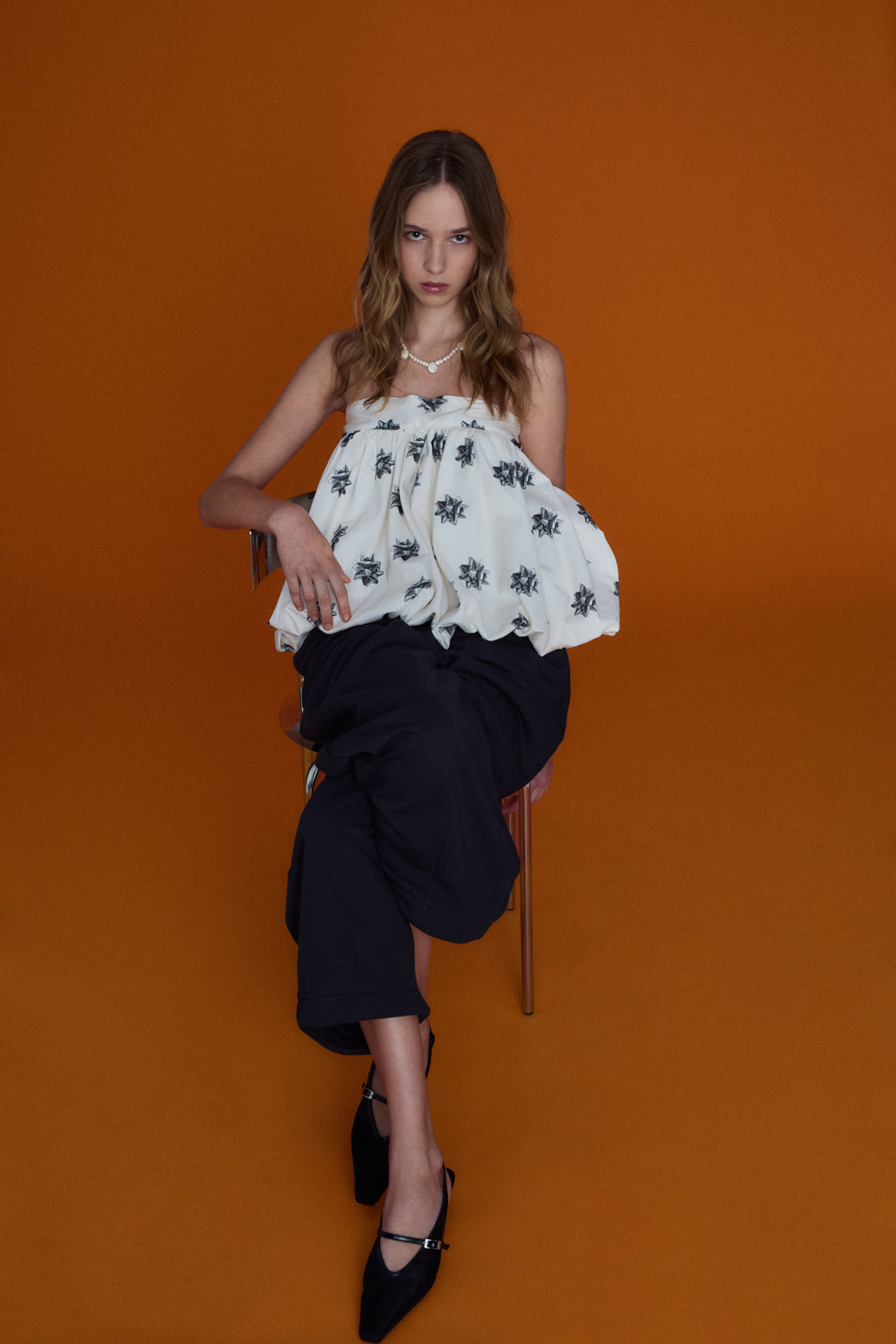 MARIBEL to transformujący się element garderoby — top, spódnica, fartuszek, a nawet pelerynka. Zależy tylko od tego, jak go zawiążesz. Wykonany z satynowej bawełny o delikatnym połysku, zadrukowanej w autorski wzór . Lekki, rzeźbiarski i zabawny — zmienia kształt razem z Tobą.